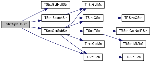 void TStr::SplitOnStr ( const TStr SplitStr,