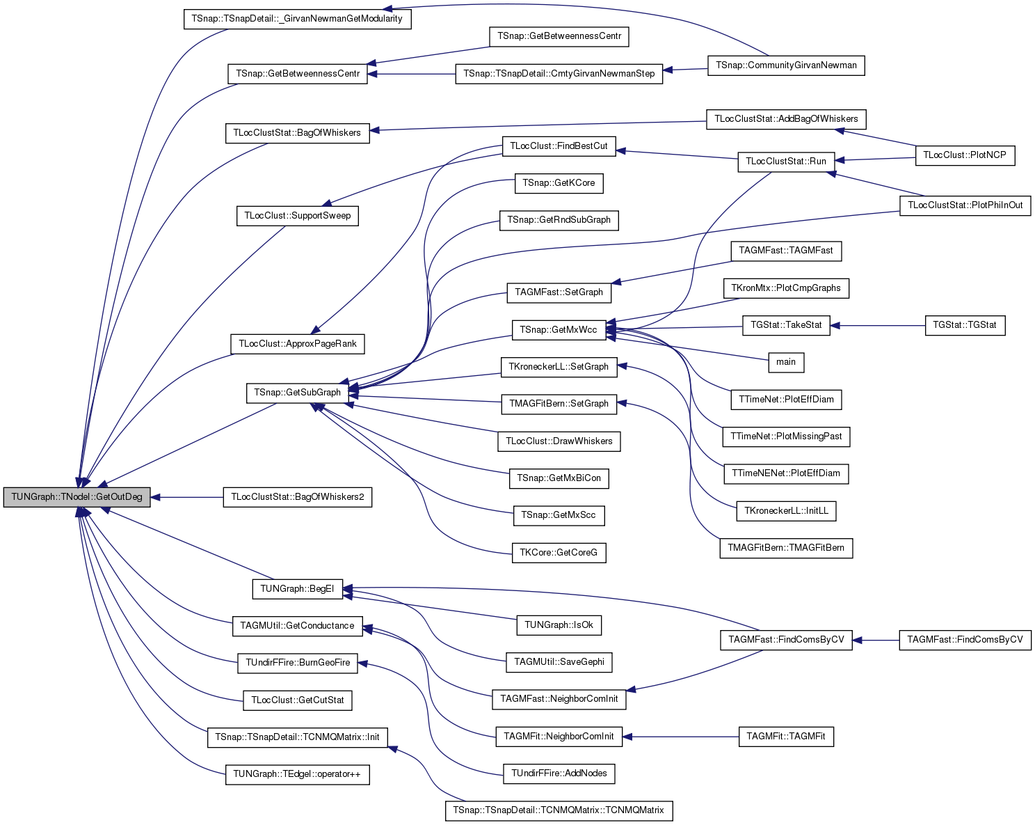 Referenced by TSnap::GetCmnNbrs< PUNGraph >(), TLocClustStat::TCutInfo::GetFracDegOut(), TAGMUtil::GetNbhCom(), TCliqueOverlap::GetNbrs(), TCliqueOverlap::GetNodeIdWithMaxDeg(), TAGMFast::GradientForOneVar(), TAGMFast::GradientForRow(), TAGMFast::HessianForOneVar(), TAGMFit::JoinCom(), TAGMFit::LeaveCom(), TAGMFast::LikelihoodForOneVar(), TAGMFast::LikelihoodForRow(), TCliqueOverlap::MaxNbrsInCANDNodeId(), TAGMFast::MLEGradAscent(), TAGMFast::MLEGradAscentParallel(), TAGMFast::MLENewton(), TAGMFast::NeighborComInit(), TAGMFit::NeighborComInit(), TAGMFast::RandomInit(), TAGMFit::RandomInit(), TAGMFit::SeekJoin(), TAGMFit::SeekLeave(), and TAGMFit::SeekSwitch().