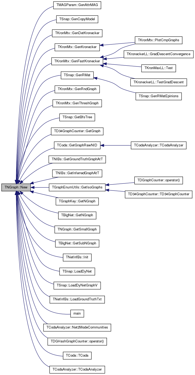Static constructor that returns a pointer to the graph. Call: PNGraph Graph = TNGraph::New().
