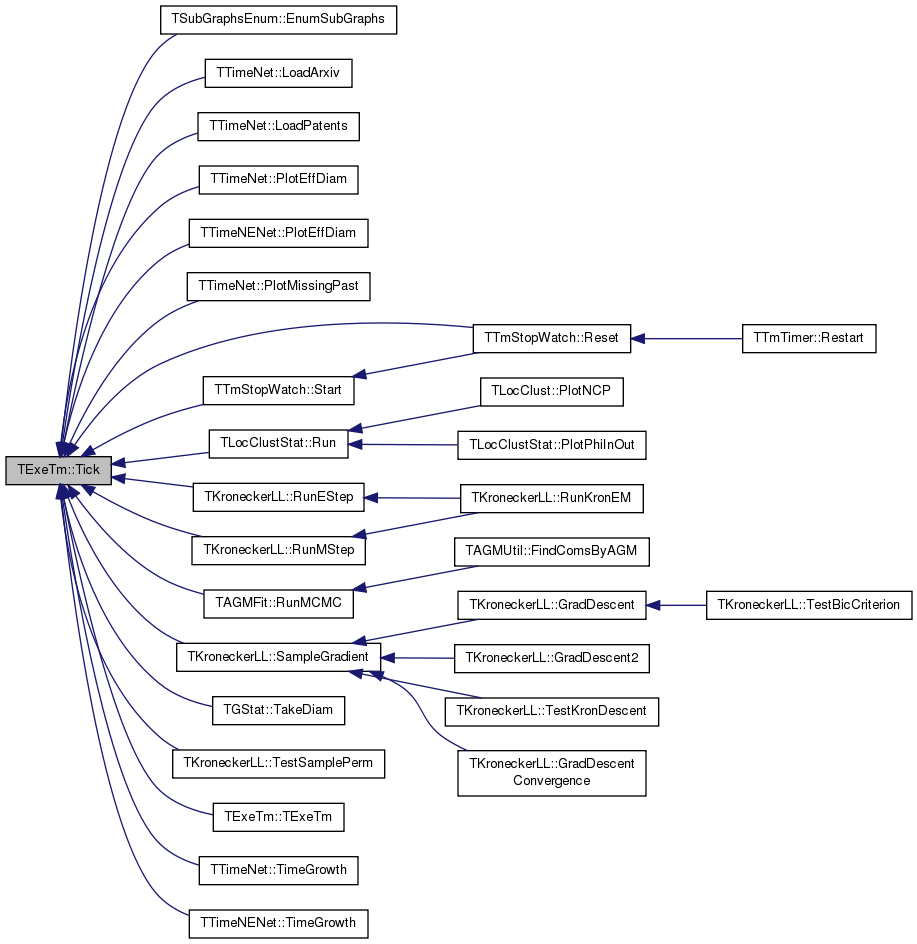 Referenced by TSubGraphsEnum::EnumSubGraphs(), TTimeNet::LoadArxiv(), TTimeNet::LoadPatents(), TTimeNet::PlotEffDiam(), TTimeNENet::PlotEffDiam(), TTimeNet::PlotMissingPast(), TTmStopWatch::Reset(), TLocClustStat::Run(), TKroneckerLL::RunEStep(), TAGMFit::RunMCMC(), TKroneckerLL::RunMStep(), TKroneckerLL::SampleGradient(), TTmStopWatch::Start(), TGStat::TakeDiam(), TKroneckerLL::TestSamplePerm(), TExeTm(), TTimeNet::TimeGrowth(), and TTimeNENet::TimeGrowth().