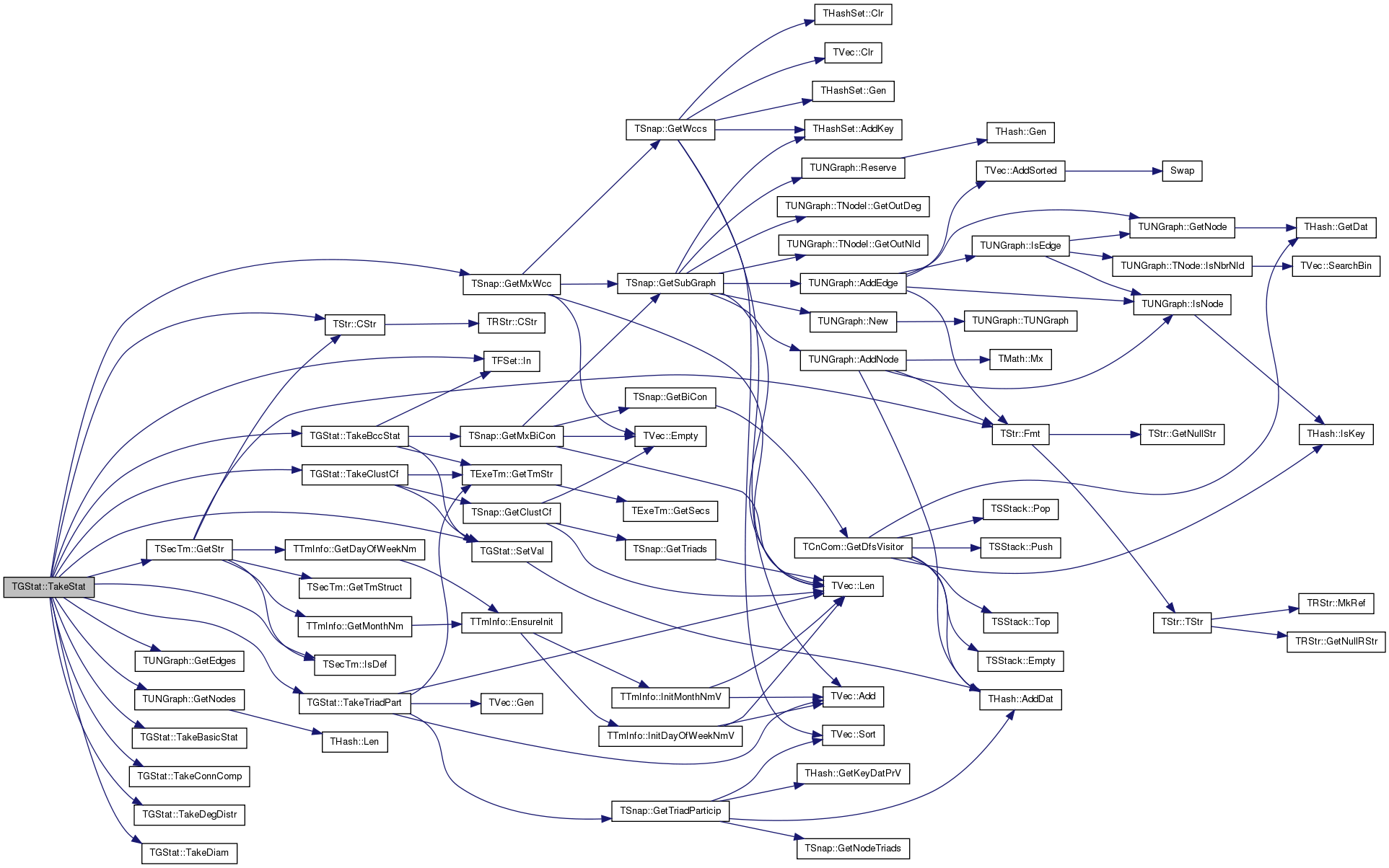 | void | TakeStat (const PNGraph &Graph, const TSecTm &Time, TFSet StatFSet, const TStr &GraphName) |