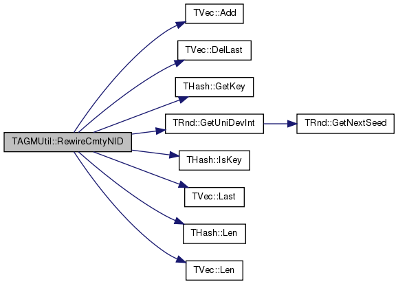 References THash< TKey, TDat, THashFunc >::AddDat(), THash< TKey, TDat, THashFunc >::GetDatV(), TVec< TVal, TSizeTy >::Len(), and RewireCmtyNID().