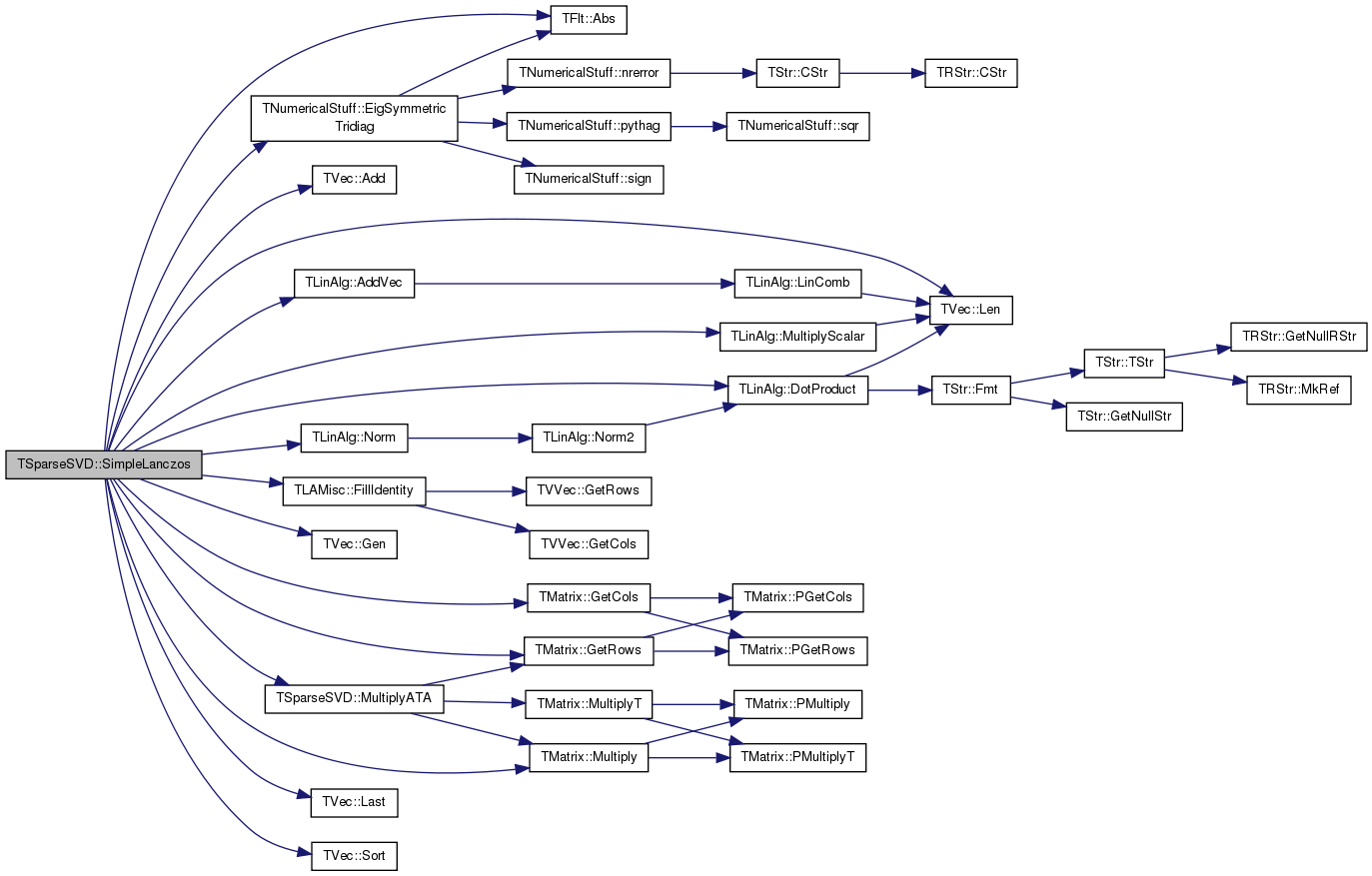 References TFlt::Abs(), TVec< TVal, TSizeTy >::Add(), TLinAlg::AddVec(), TLinAlg::DotProduct(), TNumericalStuff::EigSymmetricTridiag(), TLAMisc::FillIdentity(), TVec< TVal, TSizeTy >::Gen(), TMatrix::GetCols(), TMatrix::GetRows(), IAssert, TVec< TVal, TSizeTy >::Last(), TVec< TVal, TSizeTy >::Len(), TMatrix::Multiply(), MultiplyATA(), TLinAlg::MultiplyScalar(), TLinAlg::Norm(), and TVec< TVal, TSizeTy >::Sort().