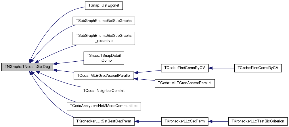 Referenced by MotifCluster::BifanMotifAdjacency(), TForestFire::BurnExpFire(), TForestFire::BurnGeoFire(), TKroneckerLL::CalcApxGraphDLL(), TKroneckerLL::CalcApxGraphLL(), TKroneckerLL::CalcGraphLL(), TSnap::CascFind(), TSnap::CascFindMP(), TNetInfBs::GenCascade(), TSnap::GenCopyModel(), TempMotifCounter::GetAllNeighbors(), TNGraph::TEdgeI::GetDstNId(), TSnap::GetEgonet(), TSnap::GetSubGraph(), TCoda::GradientForNode(), JaccardSim(), KNNJaccard(), KNNJaccardParallel(), TCoda::LikelihoodForNode(), TCoda::MLEGradAscent(), TCoda::MLEGradAscentParallel(), TCodaAnalyzer::Net2ModeCommunities(), TKroneckerLL::NodeDLLDelta(), TKroneckerLL::NodeLLDelta(), TSubGraphsEnum::RecurBfs(), TSubGraphsEnum::RecurBfs1(), TSnap::ReebRefine(), TSnap::ReebSimplify(), TSnap::SamplePersonalizedPageRank(), and TMAGFitBern::UpdateApxPhiMI().