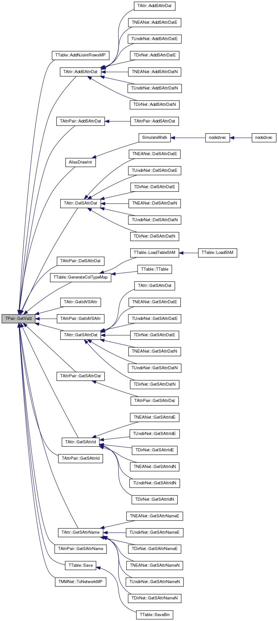 Referenced by TGnuPlot::AddPwrFit3(), TArtPointVisitor::BackEdge(), TBiConVisitor::BackEdge(), TLocClustStat::BestWhiskNodes(), TSnap::TSnapDetail::CmtyGirvanNewmanStep(), TTable::ColConcat(), TTable::ColConcatConst(), TTable::ColGenericOp(), TNIBs::ComputePerformanceNId(), TAGMUtil::ConnectCmtyVV(), TNEANet::ConvertToSparse(), TGnuPlot::CreatePlotFile(), TCache< TKey, TDat, THashFunc >::Del(), TLinAlg::EuclDist2(), TArtPointVisitor::FinishNode(), TBiConVisitor::FinishNode(), TSccVisitor< PGraph, OnlyCount >::FinishNode(), TArtPointVisitor::FwdEdge(), TSubGraphsEnum::Gen2Graphs(), TSnap::GenDegSeq(), TSnap::GenRewire(), TCrossNet::GetAttrTypeE(), TModeNet::GetAttrTypeN(), TNetInfBs::GetBestEdge(), TNetInfBs::GetBound(), THttpLx::GetCh(), TSnap::GetClustCf(), TTable::GetCollidingRows(), TPair< TFlt, TFlt >::GetMemUsed(), TSccVisitor< PGraph, OnlyCount >::GetMinDiscTm(), GetNodeAlias(), TPair< TFlt, TFlt >::GetPrimHashCd(), TPair< TFlt, TFlt >::GetSecHashCd(), TPair< TFlt, TFlt >::GetStr(), TBigNet< TNodeData, IsDir >::GetSubGraph(), GetSwitchedPrV(), TPair< TFlt, TFlt >::GetVal(), TPair< TFlt, TFlt >::GetVal1(), TCluster::Gradient(), TNetInfBs::GreedyOpt(), TTable::GroupAux(), TTable::InitializeJointTable(), TNEANetMP::IsFltAttrE(), TNEANet::IsFltAttrE(), TNEANetMP::IsIntAttrE(), TNEANet::IsIntAttrE(), TNEANetMP::IsStrAttrE(), TNEANet::IsStrAttrE(), TPair< TFlt, TFlt >::Load(), TCluster::LogLikelihood(), TLocClustStat::MakeExpBins(), TCluster::MCMC(), TJsonVal::NewArr(), TPair< TFlt, TFlt >::operator<(), TPair< TFlt, TFlt >::operator=(), TPair< TFlt, TFlt >::operator==(), TUnionFind::Parent(), TNcpGraphsBase::PlotNcpMin(), TNcpGraphsBase::PlotRewNcpMin(), TSnap::PlotSccDistr(), TSnap::PlotWccDistr(), TTable::PrintGrouping(), TCache< TKey, TDat, THashFunc >::Put(), TAGMUtil::RewireCmtyNID(), TAGMFit::SampleTransition(), TPair< TFlt, TFlt >::Save(), TNcpGraphsBase::SaveTxtNcpMin(), TTable::SelfSimJoinPerGroup(), TTable::SpliceByGroup(), and TTable::ThresholdJoinCountPerJoinKeyCollisions().