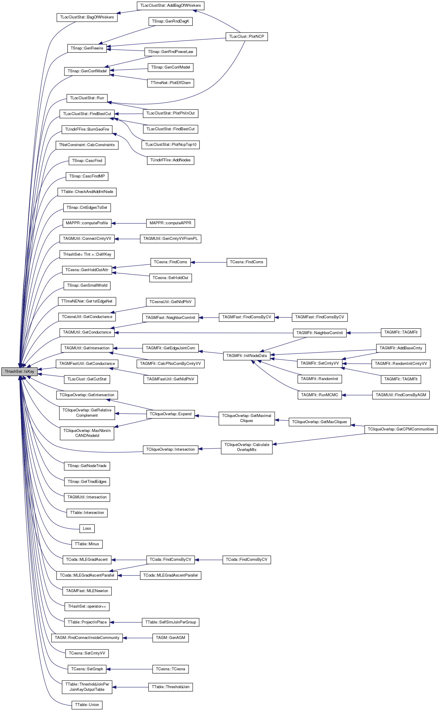 Referenced by TLocClustStat::BagOfWhiskers(), TUndirFFire::BurnGeoFire(), TNetConstraint< PGraph >::CalcConstraints(), TSnap::CascFind(), TSnap::CascFindMP(), TTable::CheckAndAddIntNode(), TSnap::CntEdgesToSet(), MAPPR::computeProfile(), TAGMUtil::ConnectCmtyVV(), THashSet< TInt >::DelIfKey(), TLocClustStat::FindBestCut(), TSnap::GenConfModel(), TCesna::GenHoldOutAttr(), TSnap::GenRewire(), TSnap::GenSmallWorld(), TTimeNENet::Get1stEdgeNet(), TCesnaUtil::GetConductance(), TAGMUtil::GetConductance(), TAGMFastUtil::GetConductance(), TLocClust::GetCutStat(), TCliqueOverlap::GetIntersection(), TAGMUtil::GetIntersection(), TSnap::GetNodeTriads(), TCliqueOverlap::GetRelativeComplement(), TSnap::GetTriadEdges(), TCliqueOverlap::Intersection(), TAGMUtil::Intersection(), TTable::Intersection(), Loss(), TCliqueOverlap::MaxNbrsInCANDNodeId(), TTable::Minus(), TCoda::MLEGradAscent(), TCoda::MLEGradAscentParallel(), TAGMFast::MLENewton(), THashSet< TKey, THashFunc >::operator==(), TTable::ProjectInPlace(), TAGM::RndConnectInsideCommunity(), TLocClustStat::Run(), TCesna::SetCmtyVV(), TCesna::SetGraph(), TTable::ThresholdJoinPerJoinKeyOutputTable(), and TTable::Union().