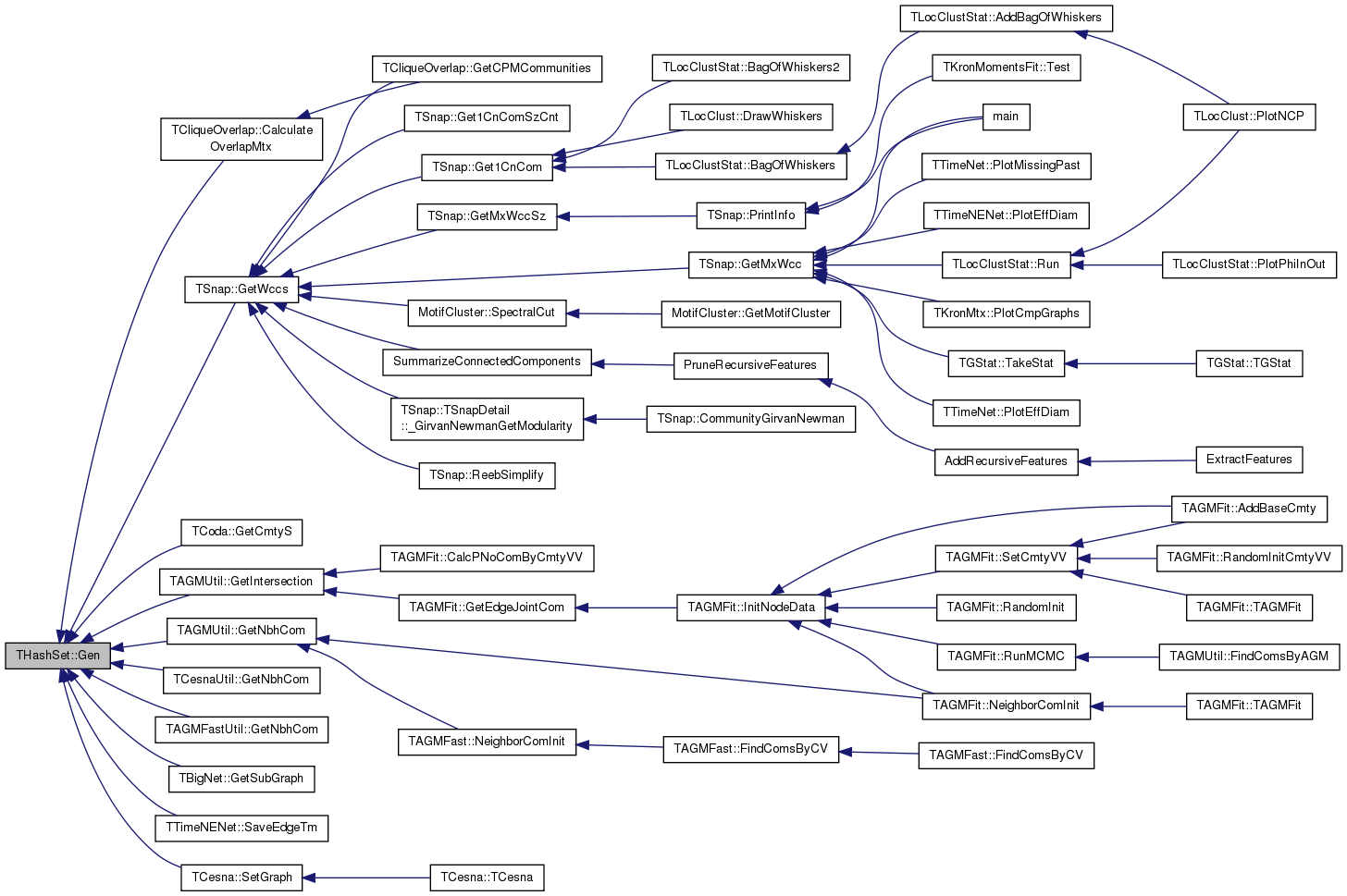 Referenced by TLocClustStat::BagOfWhiskers(), TUndirFFire::BurnGeoFire(), TNetConstraint< PGraph >::CalcConstraints(), TCliqueOverlap::CalculateOverlapMtx(), TSnap::CascFind(), TSnap::CascFindMP(), TTable::CheckAndAddIntNode(), TSnap::CntEdgesToSet(), TSnap::CntUniqDirEdges(), TSnap::CntUniqUndirEdges(), MAPPR::computeProfile(), TAGMUtil::ConnectCmtyVV(), TSnap::ConvertGraph(), TSnap::TSnapDetail::TGetSubGraph< PGraph, false >::Do(), TSnap::TSnapDetail::TConvertSubGraph< POutGraph, PInGraph, IsMultiGraph >::Do(), TSnap::TSnapDetail::TConvertSubGraph< POutGraph, PInGraph, false >::Do(), TArtPointVisitor::FinishNode(), TBiConVisitor::FinishNode(), TAGM::GenAGM(), TSnap::GenConfModel(), TCesna::GenHoldOutAttr(), TSnap::GenPrefAttach(), TSnap::GenRewire(), TSnap::GenSmallWorld(), TSnap::Get1CnCom(), TSnap::Get1CnComSzCnt(), TTimeNENet::Get1stEdgeNet(), TSnap::GetCmnNbrs(), TTable::GetCollidingRows(), TLocClust::GetCutStat(), TSnap::GetEdgeBridges(), TSnap::GetEdgesInOut(), TLocClustStat::TCutInfo::GetFracDegOut(), TCliqueOverlap::GetIntersection(), TAGMUtil::GetIntersection(), TCliqueOverlap::GetMaximalCliques(), TSnap::GetModularity(), TAGMUtil::GetNbhCom(), TCesnaUtil::GetNbhCom(), TAGMFastUtil::GetNbhCom(), TCliqueOverlap::GetNbrs(), TAGMUtil::GetNodeMembership(), TSnap::GetNodeTriads(), TTimeNENet::GetPrefAttach(), TCliqueOverlap::GetRelativeComplement(), THashSet< TInt >::GetSet(), TSnap::GetSubGraph(), TBigNet< TNodeData, IsDir >::GetSubGraph(), TSnap::GetTriadEdges(), TSnap::GetTriads_v0(), TNodeEdgeNet< TNodeData, TEdgeData >::GetUniqEdges(), TSnap::GetWccs(), TSnap::GetWccSzCnt(), TSnap::LoadDyNet(), TSnap::LoadDyNetGraphV(), THashSet< TInt >::LoadXml(), TCluster::MCMC(), TCoda::MLEGradAscent(), TCesna::MLEGradAscent(), TCoda::MLEGradAscentParallel(), TAGMFast::MLENewton(), TLocClustStat::PlotNCPScatter(), TGnuPlot::PlotValMomH(), TAGM::RndConnectInsideCommunity(), TLocClustStat::Run(), TTimeNENet::SaveEdgeTm(), TSnap::SaveMatlabSparseMtx(), TGStatVec::SaveTxt(), TGraphKey::TakeGraph(), TGraphAttributes::TGraphAttributes(), THashSet< TKey, THashFunc >::THashSet(), TTable::ThresholdJoinPerJoinKeyOutputTable(), TMMNet::ToNetwork(), TMMNet::ToNetwork2(), and TMMNet::ToNetworkMP().