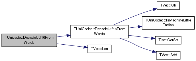 int DecodeUtf16FromWords (const TIntV &src, TIntV &dest, const TUtf16BomHandling bomHandling=bomAllowed, const TUniByteOrder defaultByteOrder=boMachineEndian) const