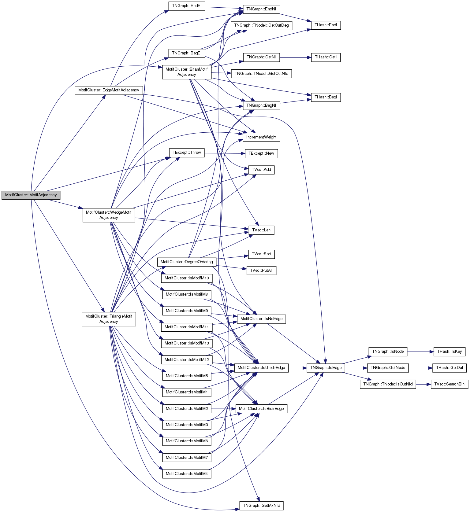 void MotifCluster::WedgeMotifAdjacency ( PNGraph  graph,
